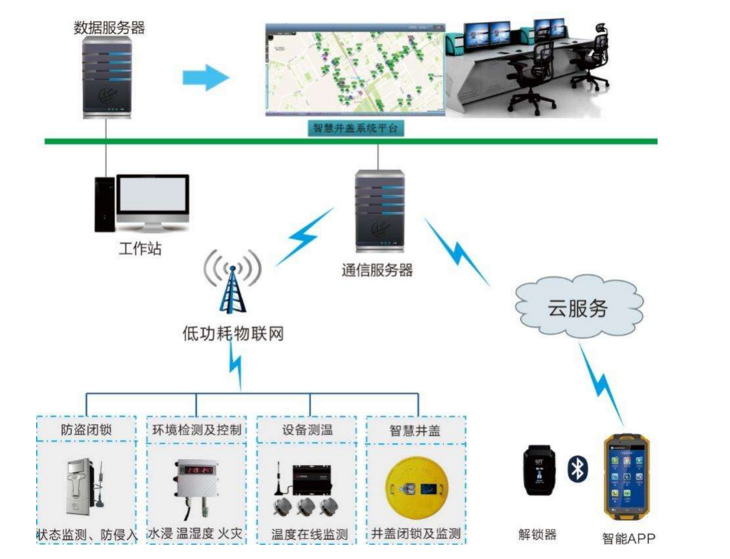 1、基于新型传感器技术、地理信息技术、计算机网络技术及其他无线通信技术等物联网相关技术,建立遍布街道井盖管理的智能网络,实现对市政井盖状态的主动感知,实时监控,一旦井盖丢失,打开、破损等立即发送报警信息到后台数据处理中心,后台通过短信方式将报警信息发送给维护人员,在最短时间内补装井盖,从而提高时间处置效率,最大限度的保障相关公共设施安全,优化市政管理效能,创新市政智慧井盖模式,完善市政井盖管理流程,促进城市精细化管理水平的提升。