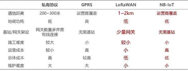 总体来说,LoRa/NB地磁具有通信距离远、电池寿命长、易施工维护等明显优势。
